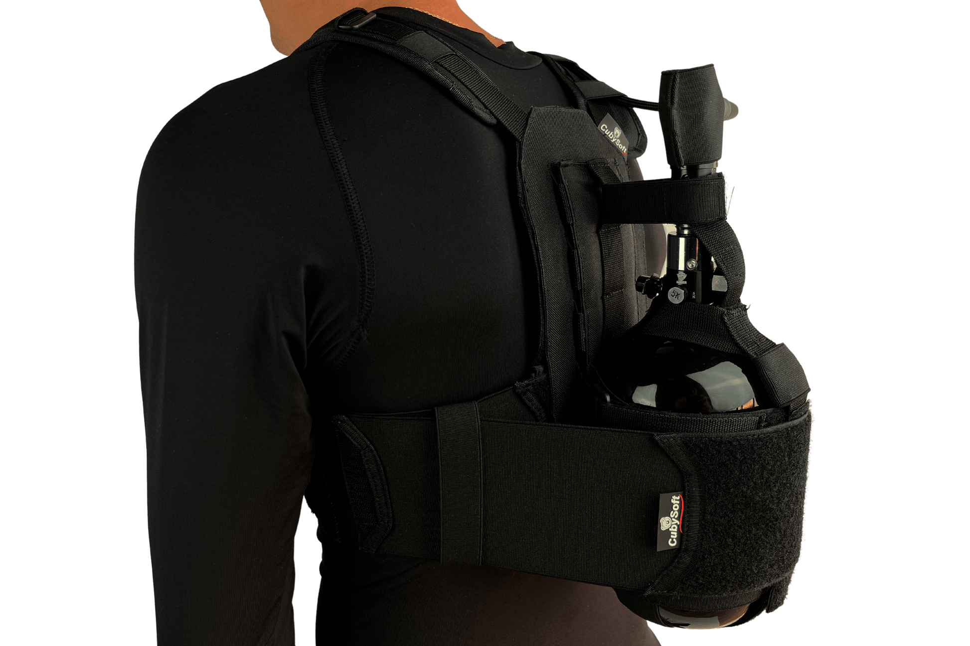 Como jugadores lo estaban esperando y aquí lo tienen. Ahora puedes llevar el tanque hpa en tu cinturón. Todo lo que necesitas para competir ahora lo puedes llevar en tu CubySoft® PRO HARNESS.